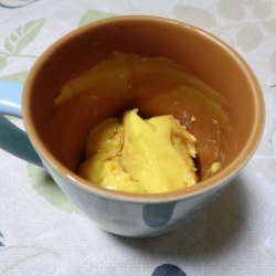 プリン昼のデザートはプリン所が気温が低温が続き何とか温める方法がないかとスマホで聞いてみたら耐熱の器で10秒くらいレンジでチンなどと出ていたのでやってみたラップをかけるとあったが略した結果、温められてよかった。#クッキングこめぞう(^-^ ...